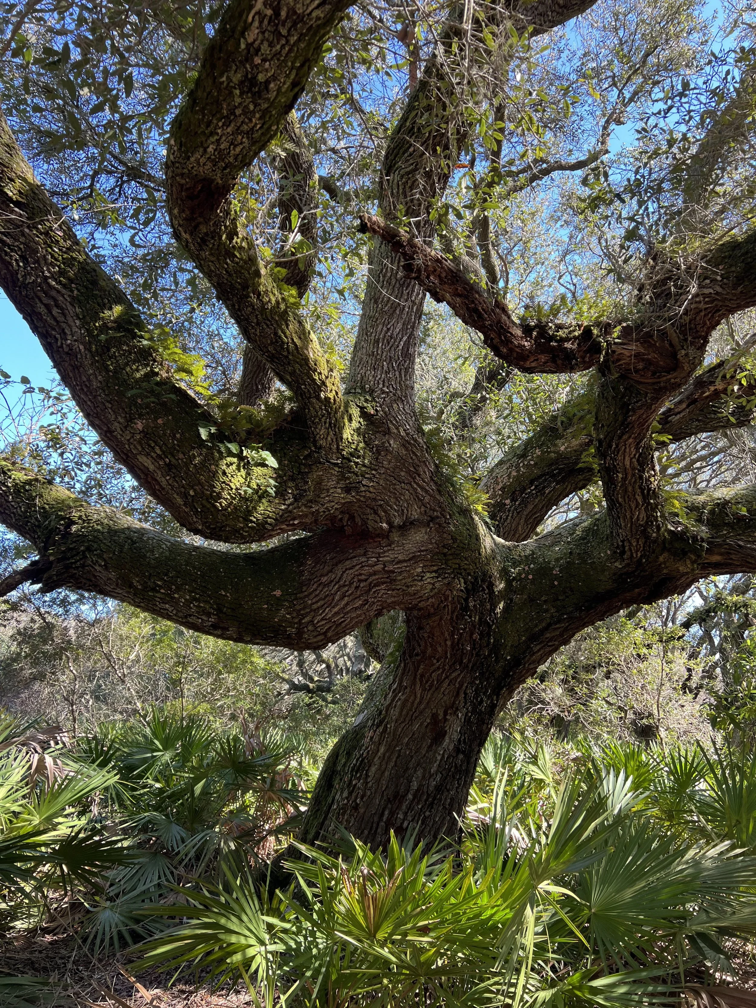 Camp amongst giant Live Oak trees with the sounds of the ocean nearby